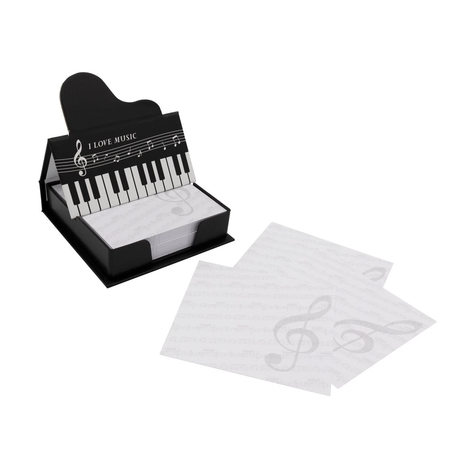 Elegantissimo e pratico box con memo (no adesivi) a tema musicale; accessorio fondamentale da scrivania per annotare appunti importanti. Design ricercato e sfizioso; ottima idea regalo per gli amanti della musica. Dimensioni: 10,5 x 10,5 x 2,5 cm